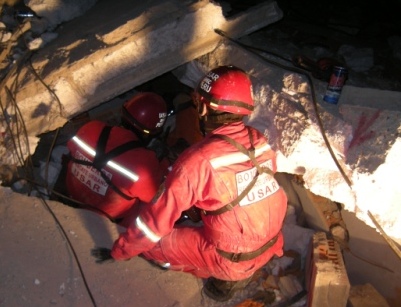 BOMBEROS RESCATISTAS DESTACADOS A BOLIVIA YA OPERAN EN EDIFICIO COLAPSADO